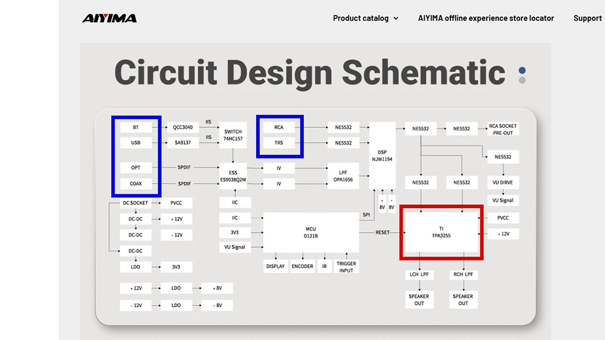 ただし この接続方法の場合はメインアンプチップ(TPA3255)を経由せずにオペアンプからRCA出力される回路のため折角の高性能アンプチップの恩恵が受けられず、単純なオペアンプ付きDACとなってしまいます。