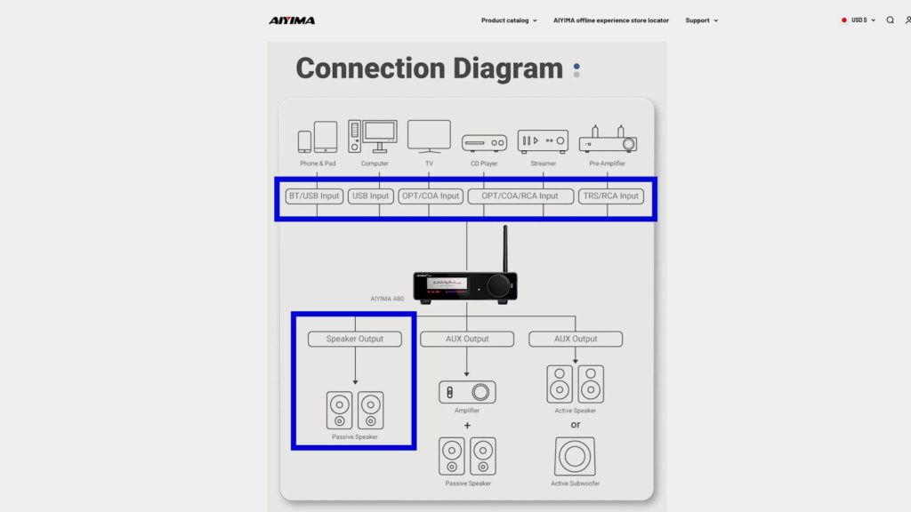 この場合、どのインプットソースでも A80のメインアンプチップを経由して出力されますが、入力ソース毎に外部アンプを用意するのは現実的ではありません。