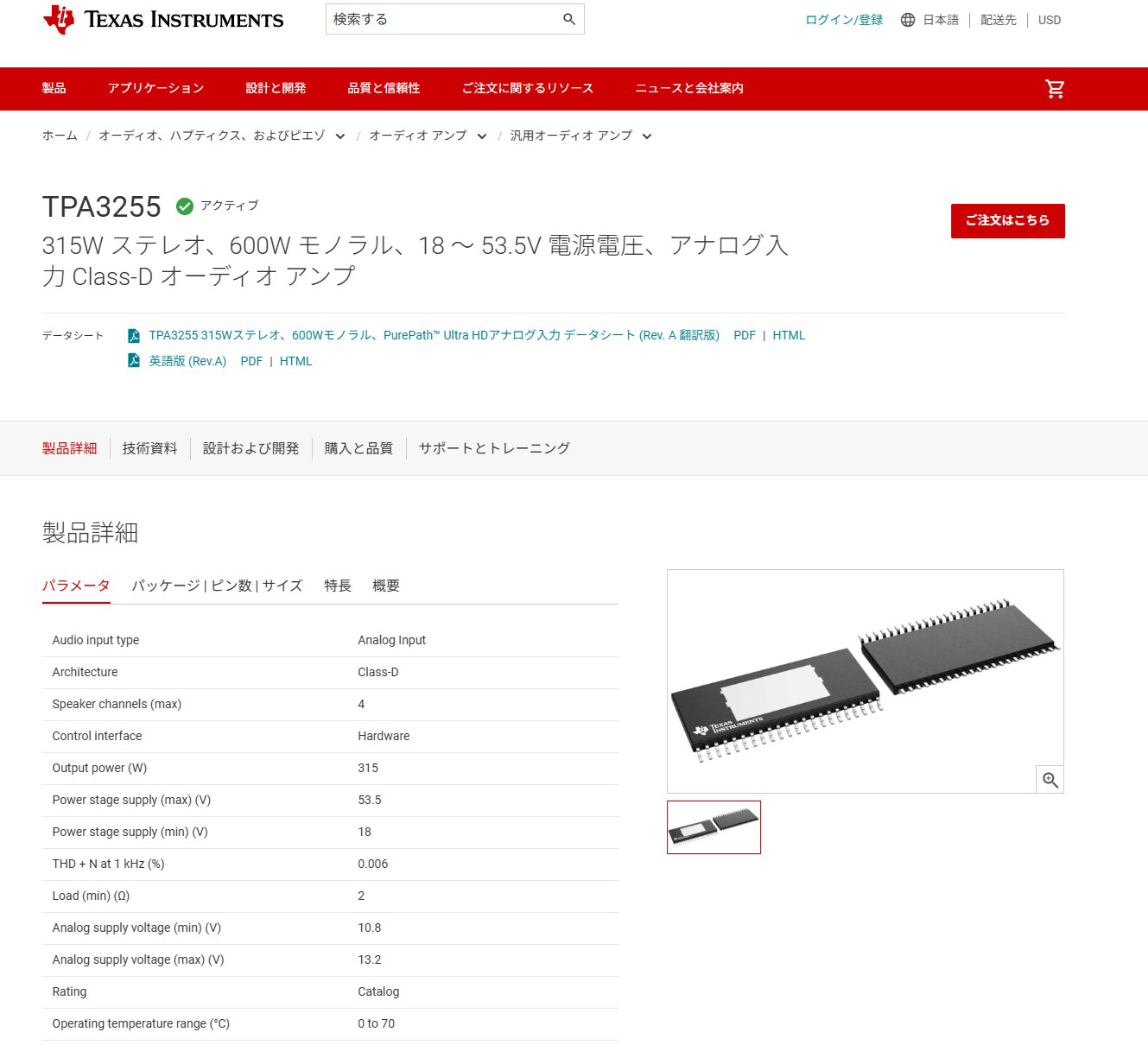 最大電圧53.5V、最小電圧18Vで、詳細仕様書によると低電圧保護回路(Undervoltage protection limit PVDD)の閾値は14.5Vでした。